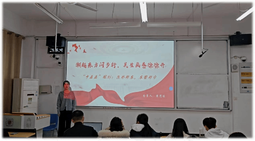 为深入学习贯彻党的二十届四中全会精神,感悟习近平新时代中国特色社会主义思想,2025年11月25日下午,马克思主义学院2025级思想政治教育(师范)1班(甘祖昌将军班)全体同学在曹天虹老师的组织下,于W1202教室举行"潮涌东方,青春向阳"主题学习分享活动。本次活动旨在通过深入学习和交流研讨,引导青年学子准确把握全会精神实质,强化理论武装,筑牢信仰之基。班级全体同学以饱满的热情投入其中,共同开启了一场富有深度与温度的理论学习之旅。