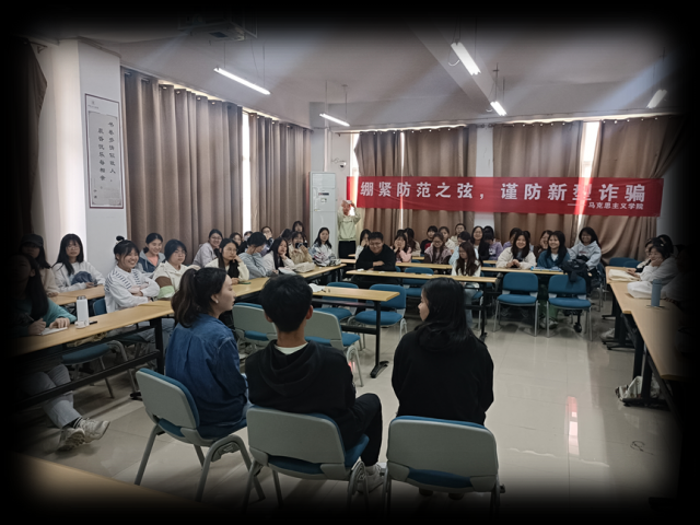 为提高广大学生防范诈骗的安全意识,增强学生对新型诈骗的识别能力,从而切实维护学生利益。马克思主义学院于4月27日下午在文科楼W2401教室举办了“绷紧防范之弦,谨防新型诈骗”反诈小剧场活动。