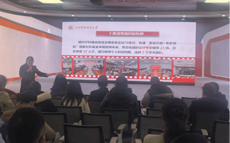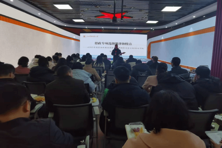 院长郜志刚结合学院思政教学与研究工作实际,深入讲解了国家社科基金思政专项选题的规律与特点。他结合当前理论前沿与政策导向,系统剖析了思政类科研项目的选题趋势、论证要点与创新路径,为全院教师进一步提升科研水平、产出高质量成果提供了清晰指引。